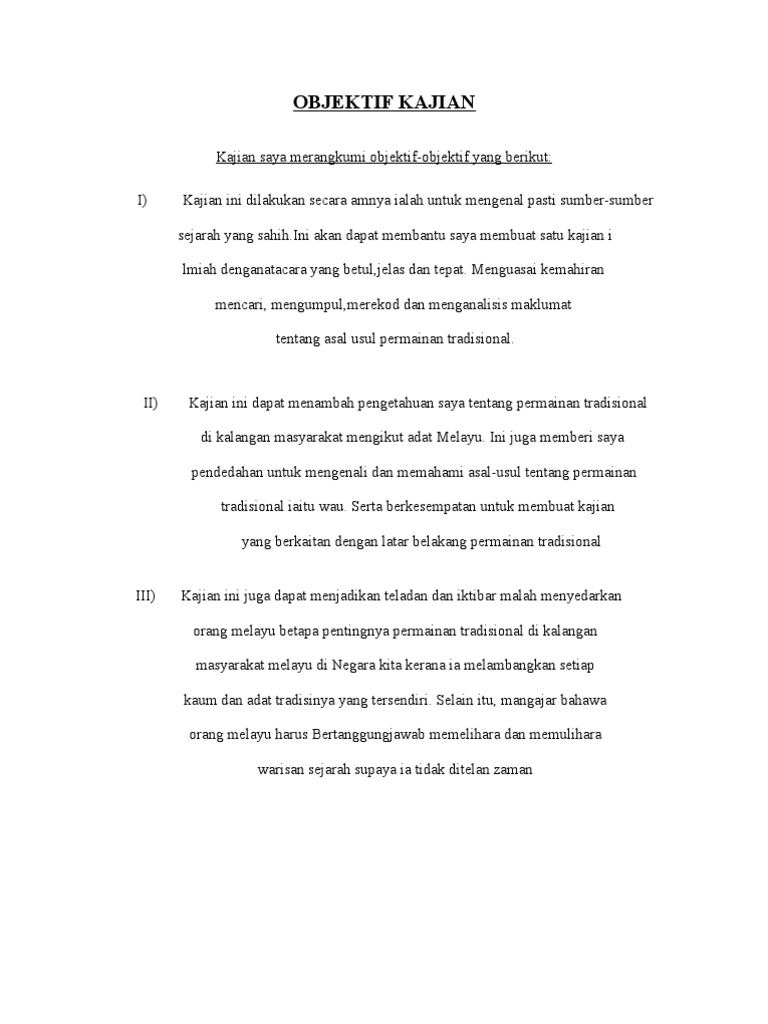 Mengukuhkan hubungan sosial dengan masyarakat setempat. Objektif kajian dalam melaksanakan kerja kursus sejarah ini terdapat beberapa. Web Contoh Ayat Objektif Kajian - 2.
